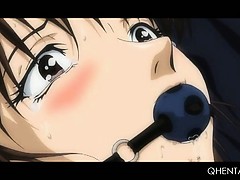 Bonded hentai girl tit fucked and cunt fingered by lusty